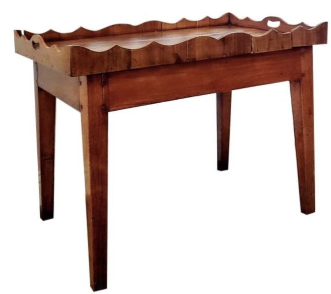 On a recent project a new reality was thrust upon me—some projects call for imperfection, aka distressing. I recently built a tray table for a customer who wanted it to closely replicate a nineteenth century French country piece, but used as a therapeutic sand tray. Upon looking at photos of the piece, I agreed that I could do a reasonable job according to her needs. The original piece was quite worn, with some cracking, blackening at points, scratches and dents, but with a rich patina from so many years of care and waxing. I knew I had the ability to build the piece as new, but replicating the aging was another story. And indeed, the customer wanted the aging too. I told her I would try, but that it would be a new technique for me. Here is the original: