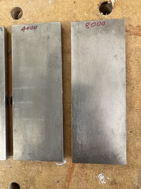 What about the performance? Amazing in every way. The 220 is super aggressive so only needed for the roughest applications, but does it hog away metal! The 325 is aggressive enough for most needs. But if the blade is not damaged at all, running from 600-8000 on the back and the bevel is all that is needed to get a super sharp blade. Ending with a slide over a honing strap makes the edge scary sharp. When the 8000 stone is first used, the end result is not the pristine mirror finish you would expect, but the more it is used, the finer the finish. The sharpness is the same.
