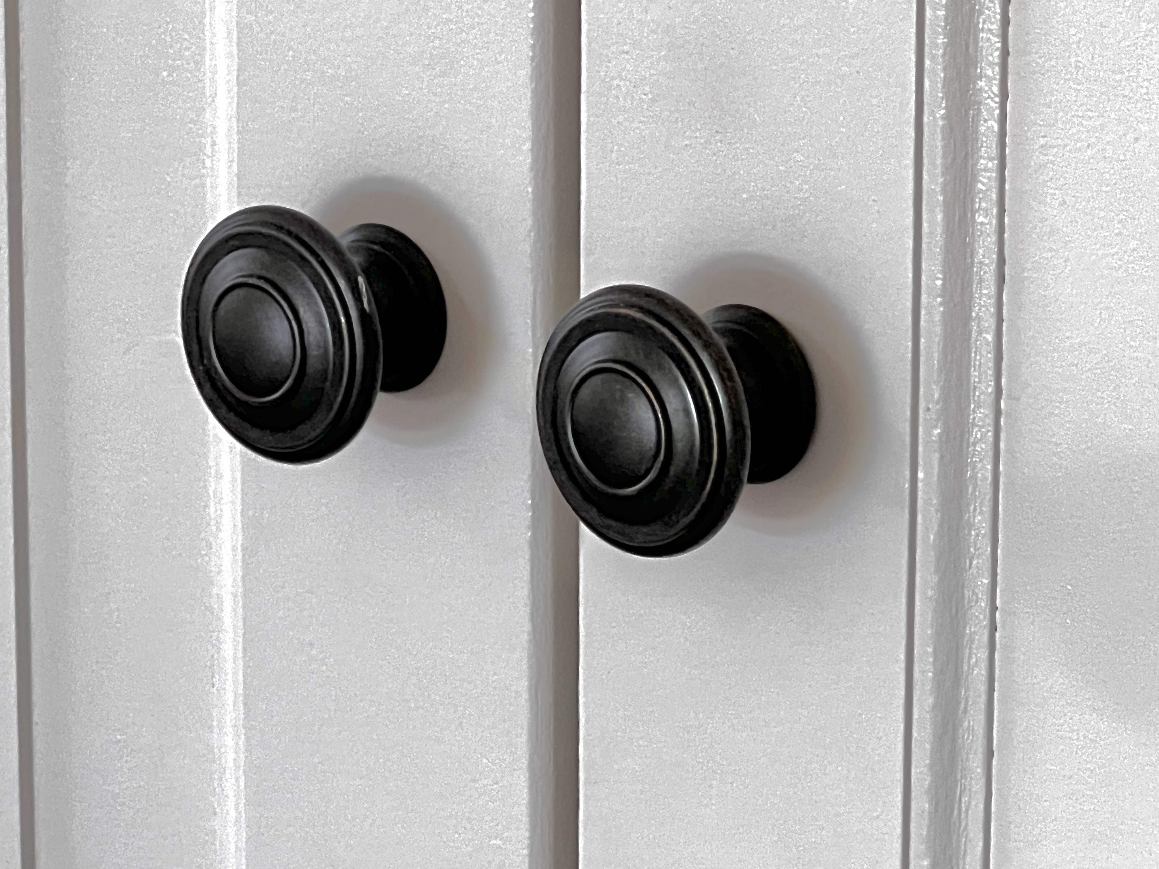Another factor was how the doors would open. Three 25” wide doors would not only be unwieldy, but invade floor space when opened, so six narrower doors were the only practical option. But since the sink is the left, opposite opening doors would be inconvenient.