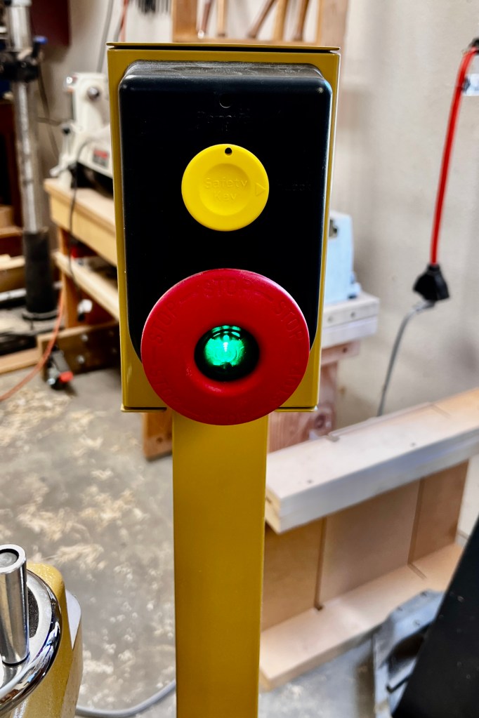 8. The safety features are standard, but well-implemented. The cutterhead cover is engineered well and works as it should. The on and off “buttons” are easy to access. Further, a magnetic switch can be removed to prevent any power at all. Sawdust is sucked downward and out through a large dust port on the base below the outfeed table.