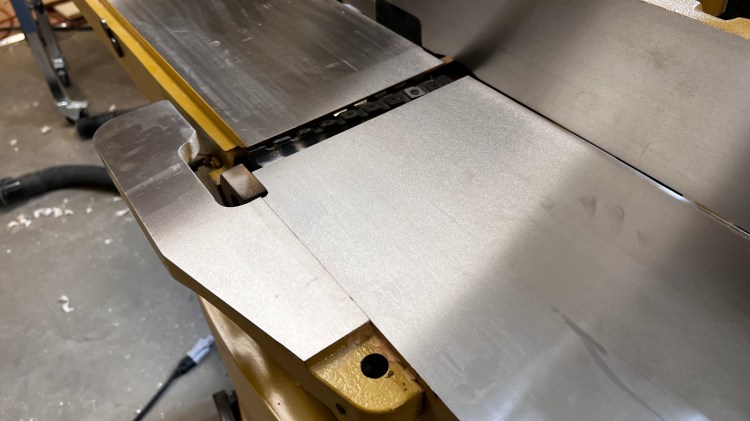 I checked with my 48” steel straight edge and the outfield table was slightly low (1/32 or 1/64?). I actually chipped two cutters when checking and had to replace them (five extras and replacement tools are included). Adjusting the outfield table with dovetail ways is not the easiest operation, but I figured it out with the manual and eventually got it dialed in perfectly. Fortunately the feed tables were exactly level with one another in every other aspect.