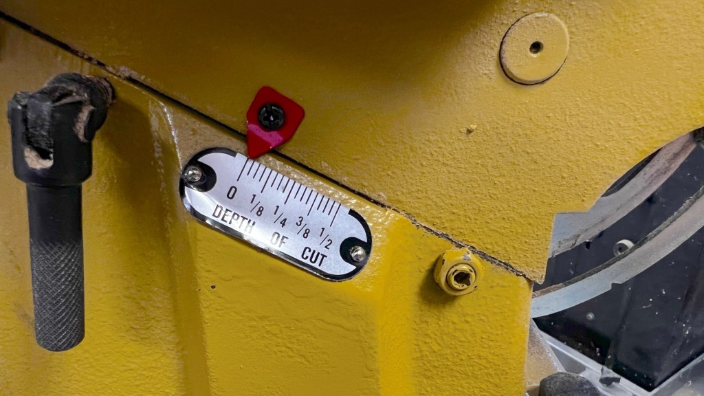 4. When needing to drop the infeed table past 1/8”, a stop on the back of the bed prevents this. For the vast majority of operations, the stop is a useful feature, since most flattening and squaring needs nothing deeper. When needing to rabbet (or taper—which I’ve not attempted), the infeed table usually needs to be lower. To do this, the knob in the back must be pulled out with right hand, while the left hand is holding the infeed table up with the major adjuster, then lowered slowly before releasing the knob. It’s a bit awkward at first, but I am getting the hang of it.